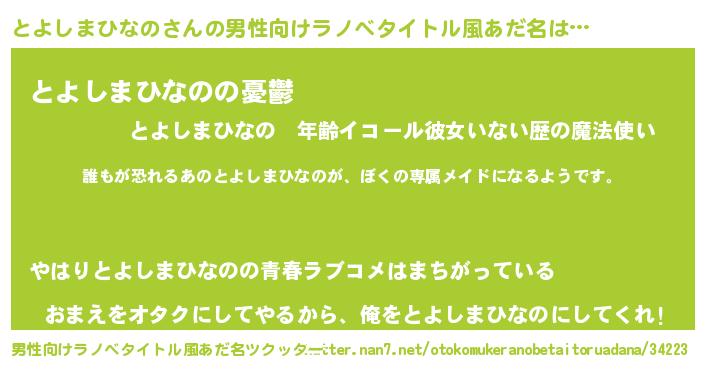 | ヘコむあだ名 | 『とよしまひなの(笑)』『とよにゅー』 |