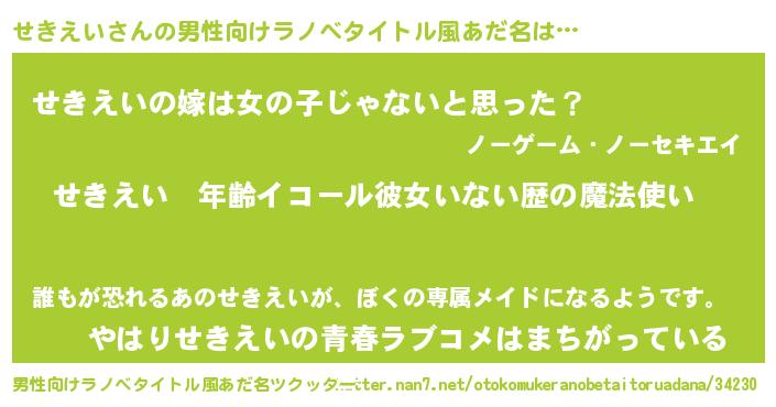 | ヒーロー風カッコイイあだ名 | 『炎刃騎士セキ』『ウルトラせきえいマン』 |