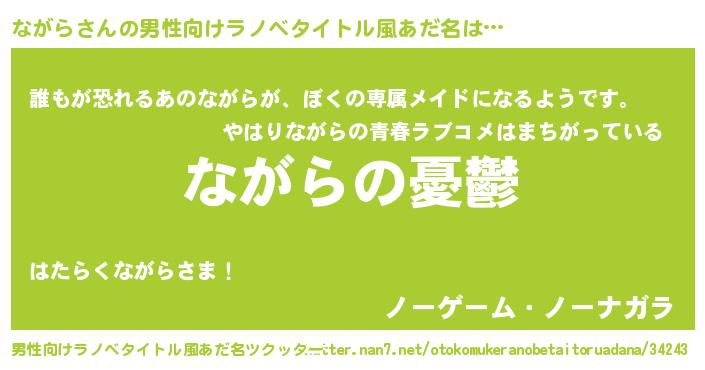 | 女子向けラノベタイトル風あだ名 | 『ながら姫と円卓の騎士』 |