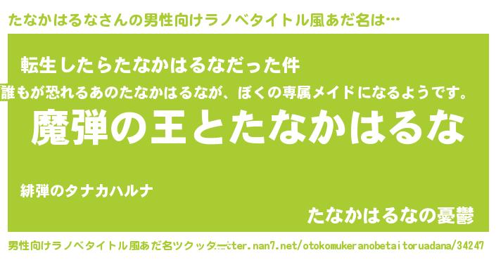 | ヘコむあだ名 | 『たなにゅー』『たなかはるな(笑)』 |