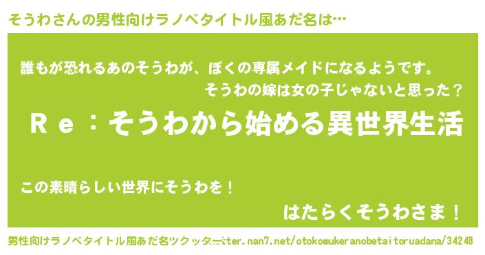 | ヘコむあだ名 | 『そうわ(遠い目)』『そうを』 |