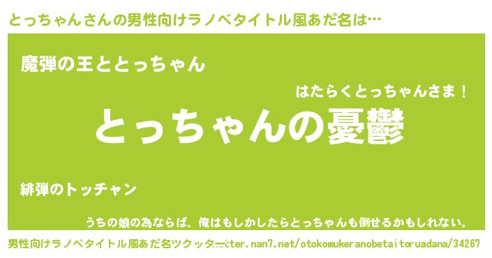 | 女子向けラノベタイトル風あだ名 | 『(仮)とっちゃんのやんごとなき事情』 |