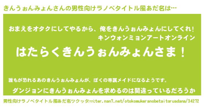 | 女子向けラノベタイトル風あだ名 | 『首の姫と首なしきんうぉんみょん』 |
