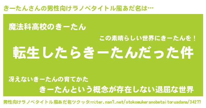| ヘコむあだ名 | 『きーたん(笑)』『きーもー』 |