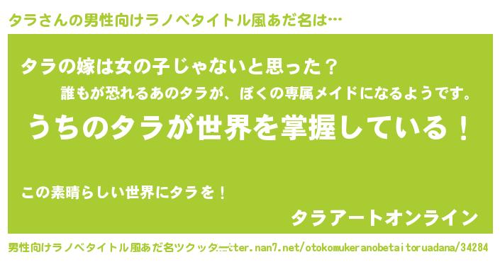 | 女子向けラノベタイトル風あだ名 | 『男装タラの憂鬱な任務』 |