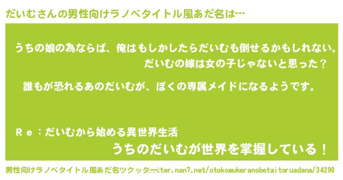 | ヘコむあだ名 | 『だいむ(笑)』『レバニラ』 |
