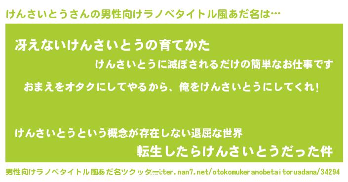 | 女子向けラノベタイトル風あだ名 | 『けんさいとう夫妻のなれそめ』 |