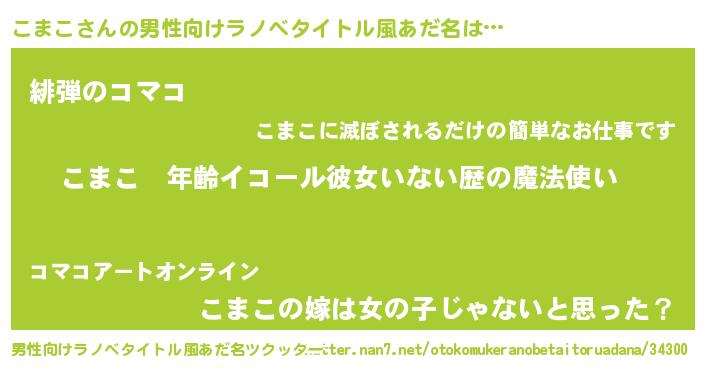 | ヒーロー風カッコイイあだ名 | 『天弓騎士コマ』『スーパーコマコ』 |