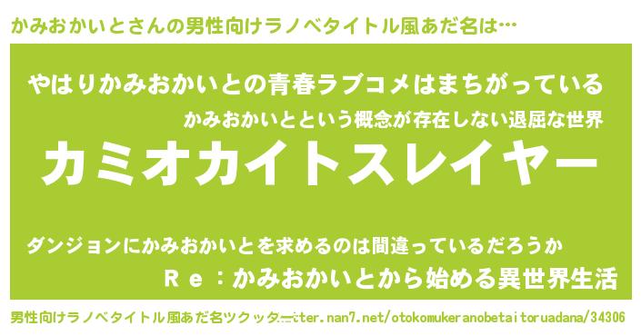 かみおかいとさんの男性向けラノベタイトル風あだ名をツクッター!