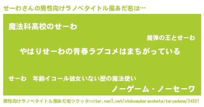 | 意味不明あだ名 | 『せーわフォーエバー』『自称せーわ』 |
