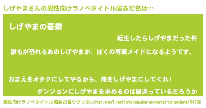 | 意味不明あだ名 | 『永久保存しげやま』『ペロリンしげやま』 |
