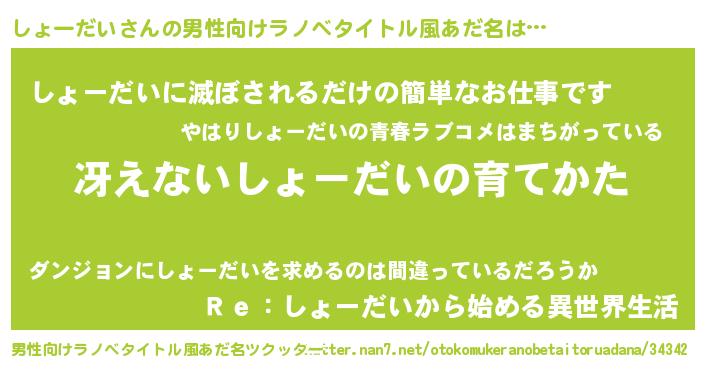 | 胡散臭い通販商品みたいなあだ名 | 『テレビで話題の高麗人参…その名も「しょーだい」』 |
