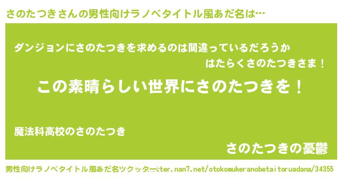 さのたつきさんの男性向けラノベタイトル風あだ名をツクッター!