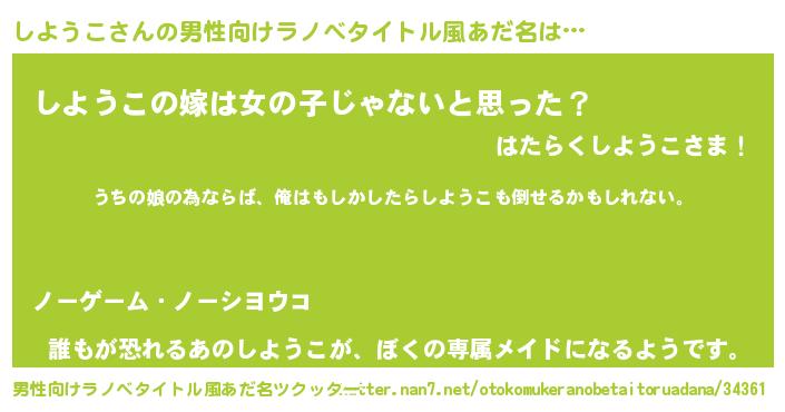 | 女子向けラノベタイトル風あだ名 | 『しようこの婚約者』 |