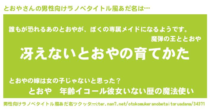 | ヘコむあだ名 | 『とおや(震え声)』『とおっちょ』 |