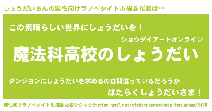 | 女子向けラノベタイトル風あだ名 | 『しょうだいなんてお断りですっ。』 |