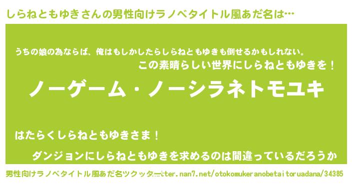 | 女子向けラノベタイトル風あだ名 | 『死神しらねともゆきの再婚』 |