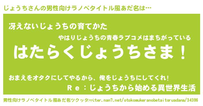 | 胡散臭い通販商品みたいなあだ名 | 『ガンによく効くアガリクス…その名も「じょうち」』 |