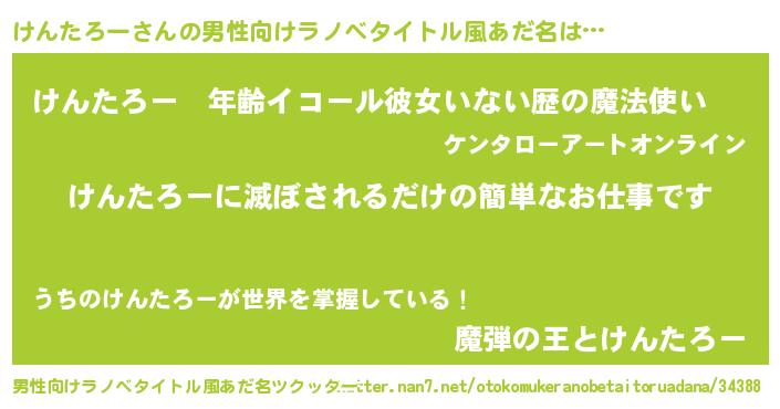 | 胡散臭い通販商品みたいなあだ名 | 『あなたにだけ特別に提供する100年もののヴィンテージワイン…その名も「けんたろー」』 |