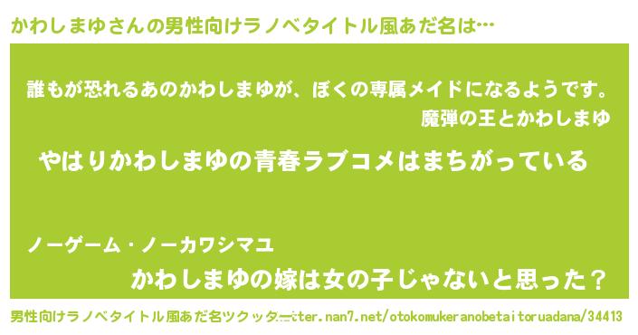| ファンタジー風あだ名 | 『エターナルカワシマユー』 |