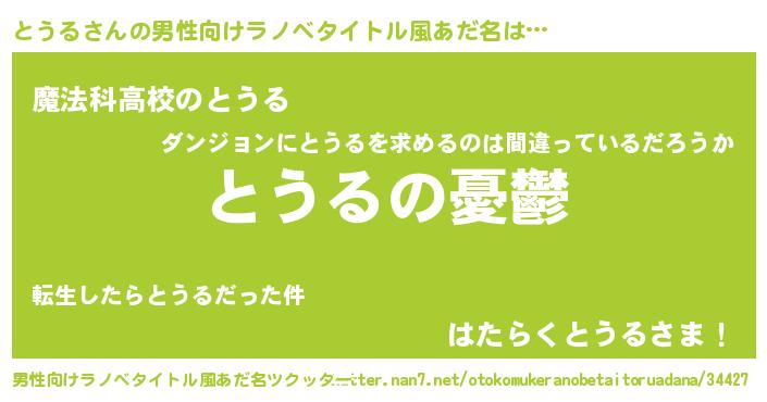 | 女子向けラノベタイトル風あだ名 | 『とうる姫と円卓の騎士』 |