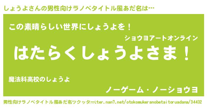 | ヘコむあだ名 | 『しょにゅー』『しょうよ(小並感)』 |