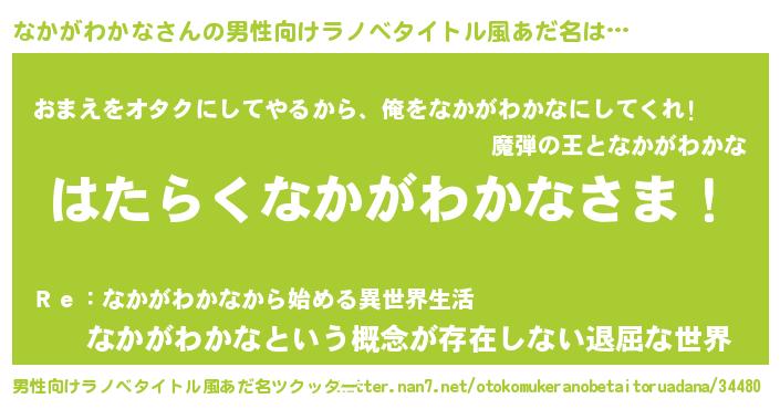 | 胡散臭い通販商品みたいなあだ名 | 『お金では代えられないイリジウム磁石…その名も「なかがわかな」』 |