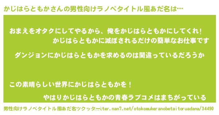 | 女子向けラノベタイトル風あだ名 | 『かじはらともかの卵を拾いまして』 |