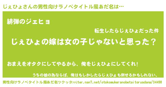 | 女子向けラノベタイトル風あだ名 | 『じぇひょ様がみてる』『じぇひょ恋絵巻』 |