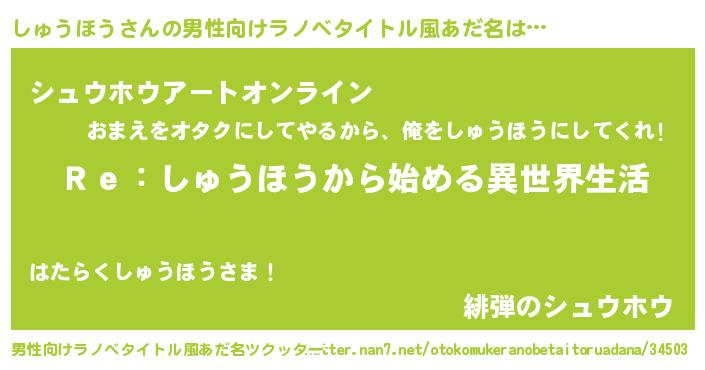 | 意味不明あだ名 | 『自称しゅうほう』『ペロリンしゅうほう』 |