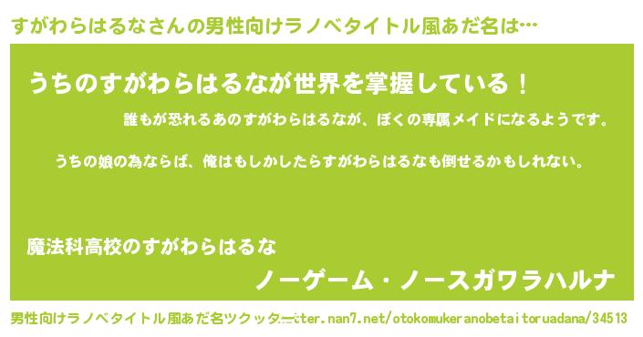 | 女子向けラノベタイトル風あだ名 | 『すがわらはるなの婚約者』 |