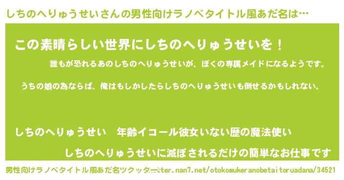 | 女子向けラノベタイトル風あだ名 | 『しちのへりゅうせい伯爵の花嫁』 |