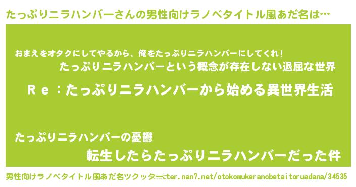 | 女子向けラノベタイトル風あだ名 | 『闇のたっぷりニラハンバー』 |