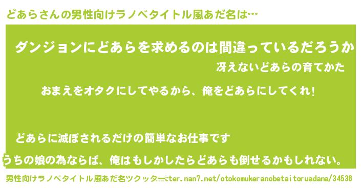 | 女子向けラノベタイトル風あだ名 | 『どあら夫妻のなれそめ』 |