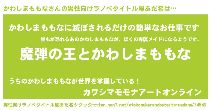 | ヒーロー風カッコイイあだ名 | 『仮面カワダー』『ネオカワシマモモナ』 |