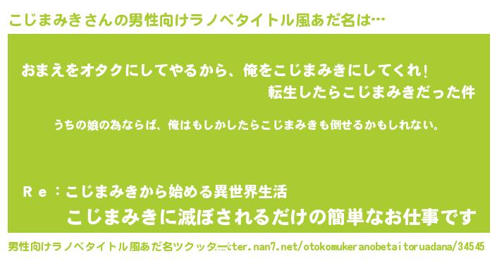 | 胡散臭い通販商品みたいなあだ名 | 『運命の人と巡り会える高級そうな皿…その名も「こじまみき」』 |