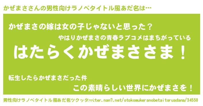 | 胡散臭い通販商品みたいなあだ名 | 『信頼と実績のペンダント…その名も「かぜまさ」』 |