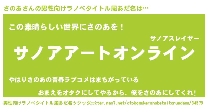 | 女子向けラノベタイトル風あだ名 | 『誰かこのさのあを説明してください! ~契約から始まるウェディング~』 |