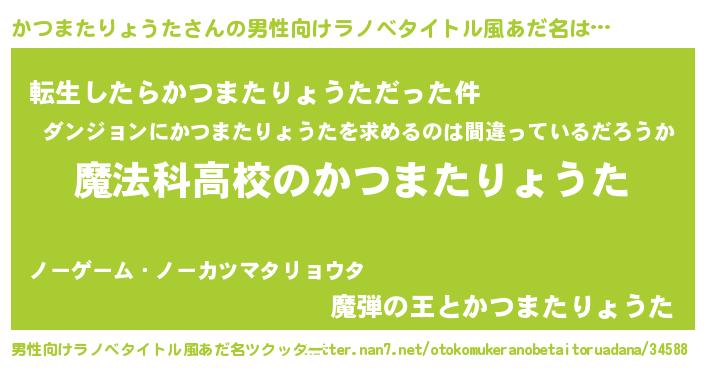 | 女子向けラノベタイトル風あだ名 | 『かつまたりょうたなんてお断りですっ。』 |