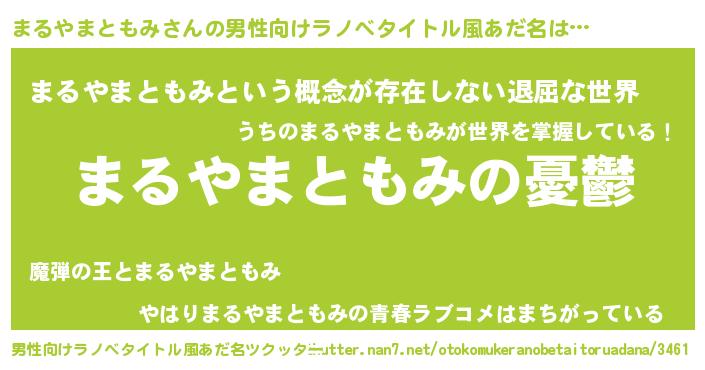 | 女子向けラノベタイトル風あだ名 | 『(仮)まるやまともみのやんごとなき事情』 |