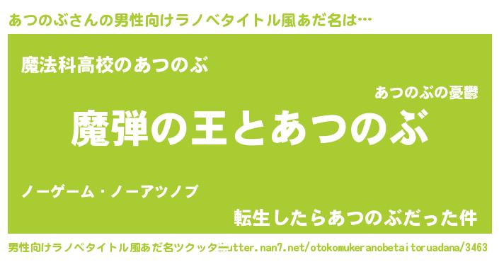 | 意味不明あだ名 | 『住所不定無職あつのぶ(43歳)』 |