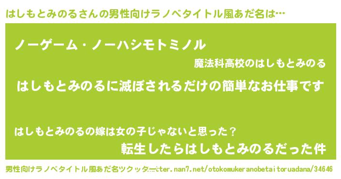 | 女子向けラノベタイトル風あだ名 | 『横柄はしもとみのると宰相陛下』 |
