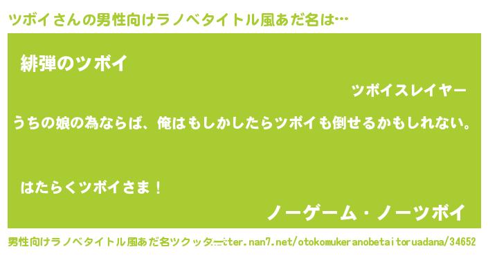 | 女子向けラノベタイトル風あだ名 | 『ツボイ伯爵の花嫁』『ツボイ恋絵巻』 |