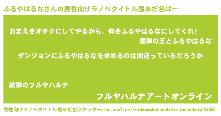 | 胡散臭い通販商品みたいなあだ名 | 『信頼と実績のサプリメント…その名も「ふるやはるな」』 |