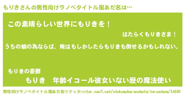 | 女子向けラノベタイトル風あだ名 | 『もりき伯爵の花嫁』 |