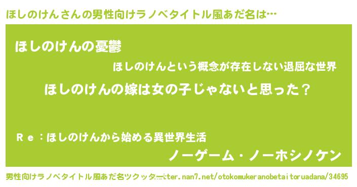 | 女子向けラノベタイトル風あだ名 | 『ほしのけん様がみてる』 |