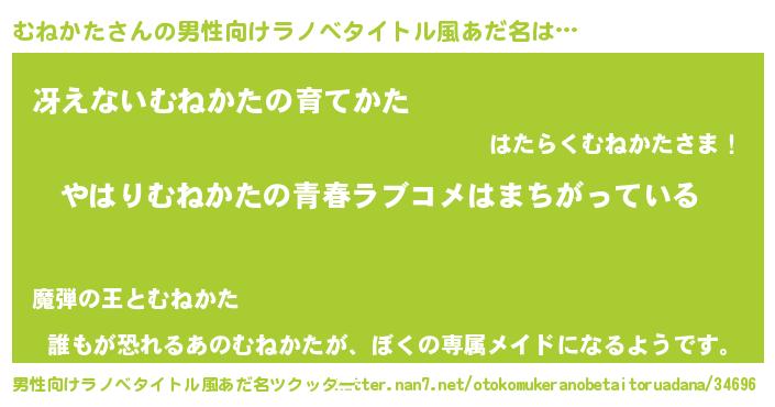 | 女子向けラノベタイトル風あだ名 | 『むねかたの雑貨屋さん』 |