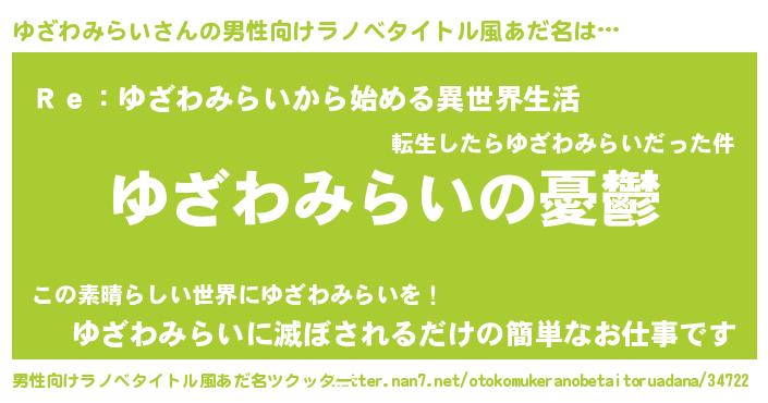 | 胡散臭い通販商品みたいなあだ名 | 『必ず成功するブレスレット…その名も「ゆざわみらい」』 |