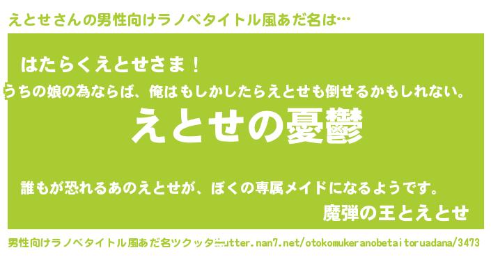 | 女子向けラノベタイトル風あだ名 | 『(仮)えとせのやんごとなき事情』 |