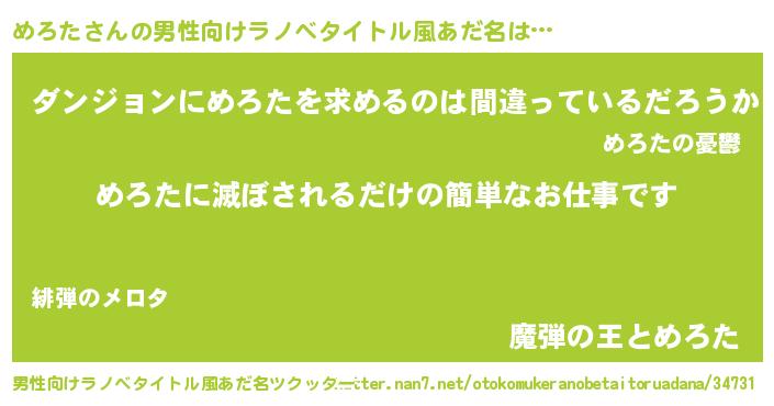 | 胡散臭い通販商品みたいなあだ名 | 『全米が絶賛したサプリメント…その名も「めろた」』 |